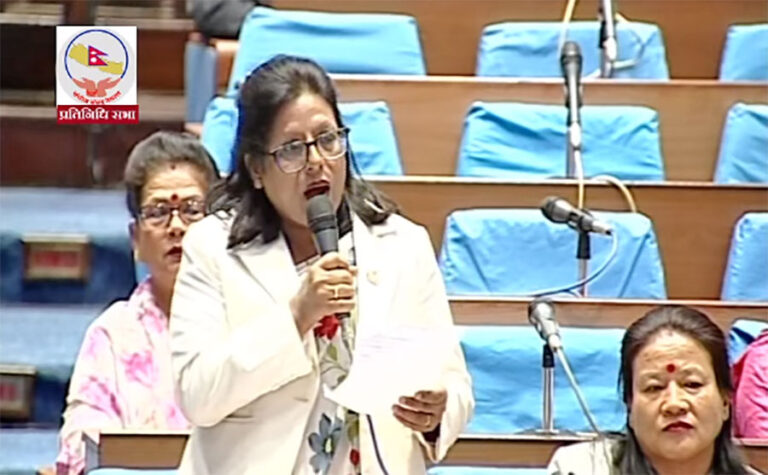 ‘प्रधानमन्त्रीज्यू यही संसदमा आएर गृहमन्त्री रवि लामिछानेविरूद्ध परेको कानूनी हिसाबले मुद्दा गर्न अयोग्य भएको फैसला गर्नुहुन्छ, मानौं वारिङ मेसिनमा राखेर सफाचट्ट पारेर निकालेकोजस्तो गरेर यहाँ बोल्नुहुन्छ,’ उनले भनिन्, ‘आरोपित गृहमन्त्री आफूविरूद्ध परेको उजुरीलाई चिर्कटोको संज्ञा दिनुहुन्छ। दु:ख लाग्छ, उजुरी त कागजमै लेख्ने होला नि, कि ताम्रपत्र, स्वर्णपत्रमा लेख्ने चलन भए त्यो पनि हामीलाई हुन्थ्यो नि सभामुख महोदय।’