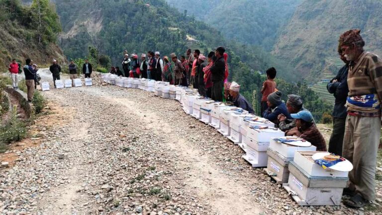आठबिसकोट नगरपालिका–११ डाँडागाउँबाट गोलासहितको मौरी घार ल्याएर कृषकलाई वितरण गर्न लागिएको हो । बाँकी छुटेका ४० जना कृषकलाई केही दिनमा सल्यानबाट मौरी घार ल्याएर वितरण गरिने प्राविधिक सहायक चन्दले बताए । अनुदानमा कृषकलाई मौरी घार वितरण गर्न कृषि विकास कार्यालयले पाँच लाख बजेट विजियोजन गरेको जनाएको छ । रासस