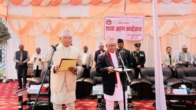 लुम्बिनी, २५ चैत । लुम्बिनी प्रदेश सरकारको मुख्यमन्त्रीमा जोखबहादुर महराले पद तथा गोपनीयताको शपथ लिएका छन् । उनले आज प्रदेश प्रमुख अमिक शेरचनसमक्ष्ँ पद तथा गोपनीयताको शपथ लिएका हुन् ।