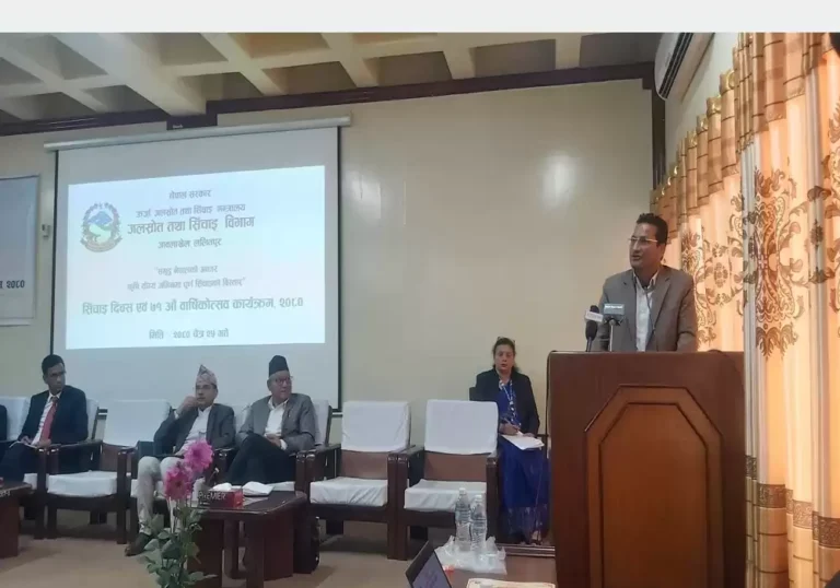 लोकसेवा आयोगका सदस्य माधव बेलवासेले खाद्य सुरक्षा अत्यन्तै गम्भीर विषय भएको भन्दै यसका लागि सिँचाइको भूमिका धेरै महत्वपूर्ण हुने बताए । “हाम्रा धेरै जमिन बाँझो अवस्थामा छन् । आयोजना उद्घाटन गरेर बस्न सक्ने अवस्था छैन । सिँचाइमा लागतको व्यवस्थापनका लागि समयमै योजना सम्पन्न गनुृपर्ने हुन्छ । ठूला आयोजनालाई प्रभावकारी कार्यान्वयनमा जोड दिनुपर्छ”, उनले भने ।