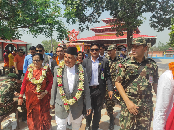 राष्ट्रपति पौडेललाई मन्दिर परिसरमा सांसद, स्थानीय सुरक्षा अधिकारी, गाउँपालिका अध्यक्ष तथा मन्दिर व्यवस्थापन समितिका पदाधिकारीले स्वागत गरेका थिए । सो अवसरमा गाउँपालिका अध्यक्ष विधानन्नद चौधरीले राष्ट्रपति पौडेललाई मायाको चिनो प्रदान गरे ।