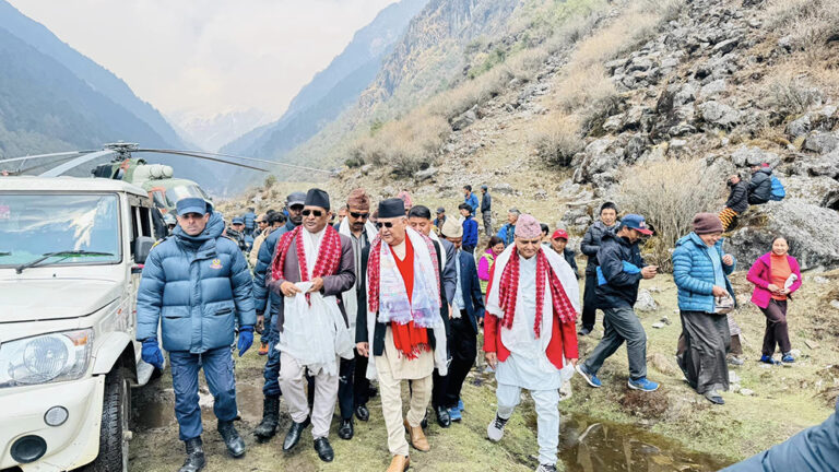 ओलाङचुङ्गोला पुगेका ओलीद्वारा सीमावर्ती क्षेत्रको हवाई अवलोकन