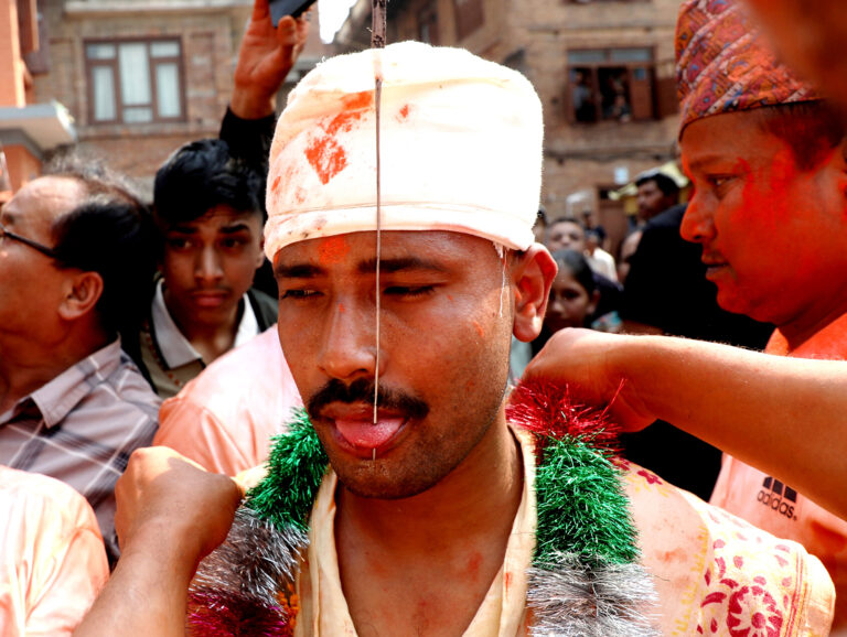 भक्तपुर, २ वैशाख । बिहानैदेखि सिन्दुर खेल्दै विभिन्न देवीदेवताका खट जात्रा गरेर रमाउँदै बिस्का चलिरहेको मध्यपुरथिमिमा मध्यान्हदेखि भने बोडे क्षेत्रमा मान्छेहरुको भीड बढ्दै गयो । हेर्दाहेर्दै मध्यपुरथिमि नगरपालिका बोडेको पाँचो गणेशको दक्षिण फर्केको पाटी आसपासदेखि बोडेको अधिकांश क्षेत्रमा मानिसहरुको भीड निकै बाक्लो भयो ।