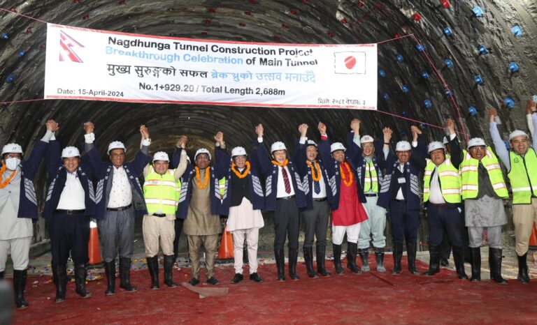 काठमाडौं, ३ वैशाख । नागढुङ्गा-सिस्ने खोला सुरुङमार्गको मुख्य सुरुङ छेड्ने (ब्रेक थ्रू) काम सम्पन्न भइको छ । प्रधानमन्त्री पुष्पकमल दाहाल ‘प्रचण्ड’ को उपस्थितिमा औपचारिक कार्यक्रमबीच सुरुङ ‘ब्रेक थ्रू’ गरिएको हो । चन्द्रागिरि नगरपालिकाको बलम्बुदेखि धादिङको सिस्नेखोला जोड्ने यो सुरुङमार्ग आयोजनाको मुख्य सुरुङको लम्बाइ २ हजार ६ सय ६७ मिटर रहेको छ । आयोजनाको उद्धार सुरुङ ‘रेस्क्यु टनेल’ भने गत साउनमै ब्रेक थ्रू भइसकेको छ ।