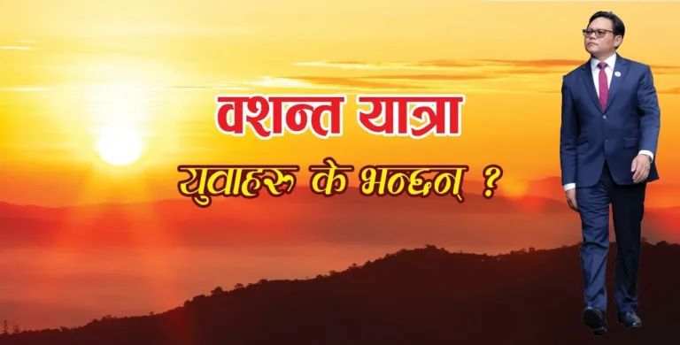 काठमाडौं, ४ वैशाख । नेकपा (माओवादी केन्द्र) का नेता एवं पूर्वमन्त्री सुदन किराती यतिबेला ‘वसन्त यात्रा’ मा छन् । ‘युवाहरू के भन्छन्’ शीर्षकमा अन्तरक्रिया कार्यक्रम लिएर पूर्वका जिल्लाहरु भ्रमणमा निस्किएका पूर्वमन्त्री किरातीले उक्त अभियानलाई ‘वसन्त यात्रा’ नामाकरण गरेका छन् ।