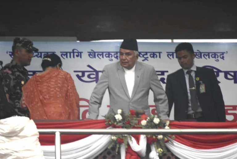 गाउँ–गाउँमा विकासका विभिन्न पूर्वाधार निर्माण गरेजस्तै खेलकुदका लागि आवश्यक स्रोत साधन, दक्ष प्रशिक्षक र पूर्वाधार निर्माणमा राज्यले जोड दिनुपर्ने राष्ट्रपति पौडेलको भनाई थियो । तस्विर : मुकुन्द कालिकोटे, रिपोर्टर्स नेपाल डटकम