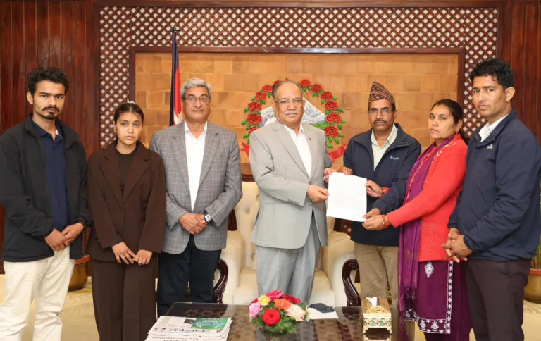 काठमाडौं, वैशाख ७। हमास समूहको नियन्त्रणमा रहेका कञ्चनपुरका विपिन जोशीका बुबाआमाले छोराको रिहाइका लागि पहल गरिदिन प्रधानमन्त्री पुष्पकमल दाहाल ‘प्रचण्ड’सँग भेट गरेका छन् । शुक्रबार बिहान प्रधानमन्त्री निवास बालुवाटारमा जोशीका बुवा आमासहित परिवारले भेट गरेको हुन् । भेटमा जोशीको परिवारले विपिनको रिहाइका लागि थप पहल गरिदिन आग्रह गरिदिन प्रधानमन्त्रीलाई ध्यानाकर्षण गराएका छन् ।