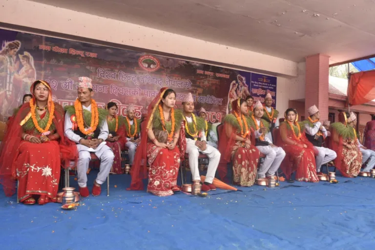 काठमाडौं, ७ बैशाख । विश्व हिन्दू परिषद् नेपालको १२औं वार्षिकोत्सवको अवसरमा पशुपतिनाथ मन्दिरको हंस मण्डपमा सामूहिक विवाह सम्पन्न भएको छ ।