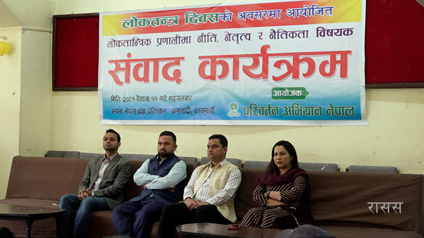 लोकतन्त्र दिवसका अवसरमा परिवर्तन अभियान नेपालद्वारा आज आयोजित युवा संवादमा उनीहरुले सङ्घीय लोकतान्त्रिक गणतन्त्रको सुदृढीकरण गरी समुन्नत राष्ट्र निर्माण गर्न लोकतान्त्रिक प्रणाली सबैभन्दा उत्तम रहेको बताए ।