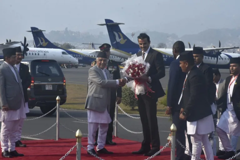 काठमाडौं,११ वैशाख । राष्ट्रपति रामचन्द्र पौडेलको मैत्रीपूर्ण निमन्त्रणामा कतारका अमिर शेख तमिम बिन हमाद अल थानी आज अपराह्न नेपालको दुईदिने औपचारिक भ्रमणमा आएका छन् ।