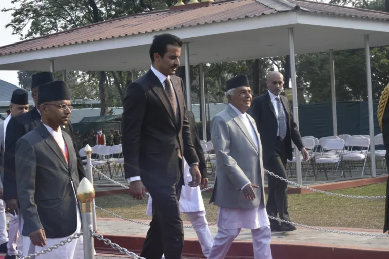 काठमाडौं, ११ बैशाख । कतारका अमिर शेख तमिम बिन हमाद अल थानीले काठमाडौं ओर्लनेबित्तिकै भेटवार्तामा व्यस्त भएका छन् । अमिर थानी त्रिभुवन अन्तर्राष्ट्रिय विमानस्थलबाट सिधै राष्ट्रपति कार्यालय शितलनिवास पुगेका छन् । शितलनिवासमा राष्ट्रपति रामचन्द्र पौडेलसँग भेटवार्ता सकिएपछि उनी आफू बास बस्ने होटल सोल्टी पुग्नेछन् ।