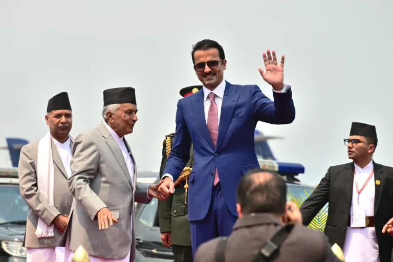 काठमाडौँ, १२ वैशाख । कतारका अमिर शेख तमिम विन हमाद अल थानीले यही वैशाख ११ र १२ गते नेपालको राजकीय भ्रमण सम्पन्न गरेका छन् ।