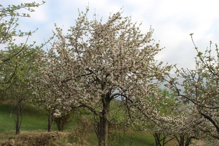 जिल्लैभरका स्याउका बगैँचा सेताम्मे भएपछि यहाँको वातावरण रोमाञ्चक देखिएको छ । चैत–वैशाख स्याउका बोटमा फुल लाग्ने याम हो । यो स्याउ भदौसम्म पाकिसक्छ ।