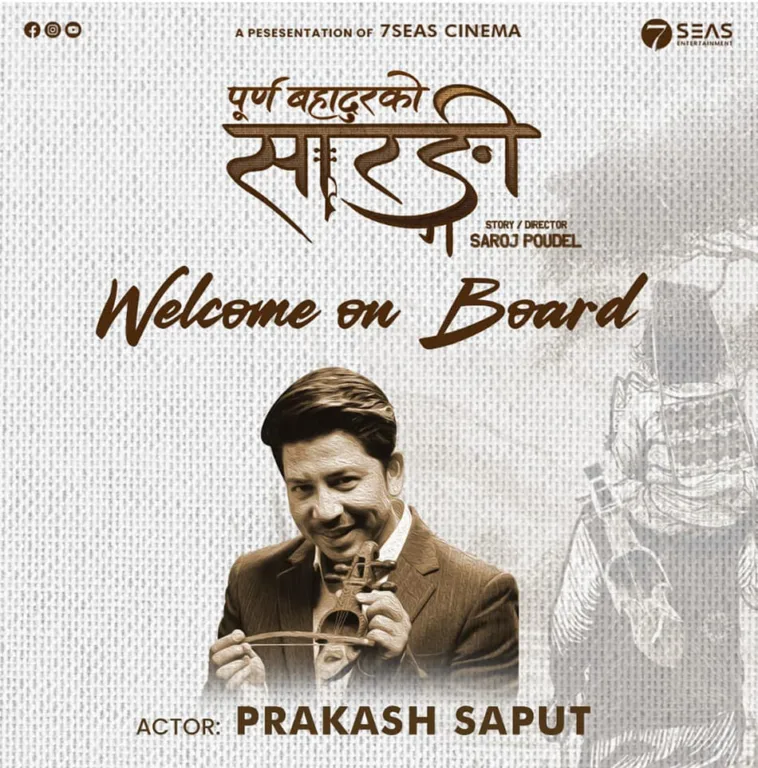 काठमाडौं । सेभेन सिज इन्टरटेनमेन्टले निर्माण गर्न लागेको फिल्म ‘पूर्ण बहादुरको सारङ्गी’मा गायक तथा कलाकार प्रकाश सपुत अनुबन्धित भएका छन् ।
