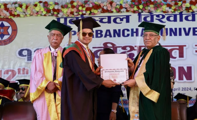 काठमाडौँ, १४ वैशाख । पत्रकार नारायण ढुङ्गानाले पूर्वाञ्चल विश्वविद्यालयबाट ‘गोल्ड मेडल’ प्राप्त गरेका छन् । पूर्वाञ्चल विश्वविद्यालयको १२औँ दिक्षान्त समारोहमा उनलाई उक्त पदक प्रदान गरिएको हो । विश्वविद्यालयका कूलपति एवं प्रधानमन्त्री पुष्पकमल दाहाल ‘प्रचण्ड’ ले आमसञ्चार तथा पत्रकारिताअन्तर्गत स्नातकोत्तर तहमा विश्वविद्यालयमा उत्कृष्ट नतिजा ल्याएका ढुङ्गानालाई सो पदक प्रदान गरेका हुन् ।