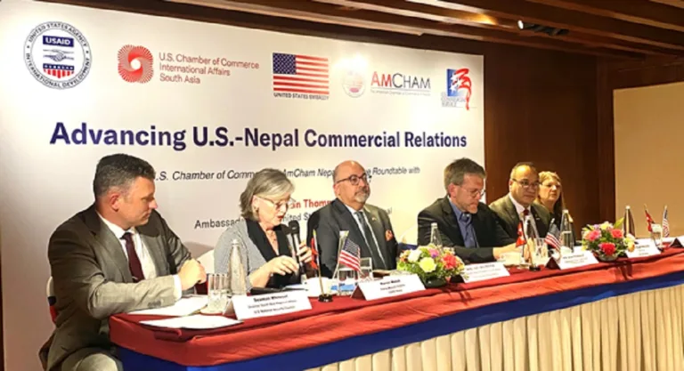 राजदूत थम्पसनले पछिल्लो समय अमेरिकी सरकारले विद्युतीय प्रसारण लाइन, सडकलगायतका पूर्वाधार क्षेत्रमा लगानीका साथै महिलाद्वारा सञ्चालित साना उद्यममा पनि सहयोग गरिरहेको बताए ।