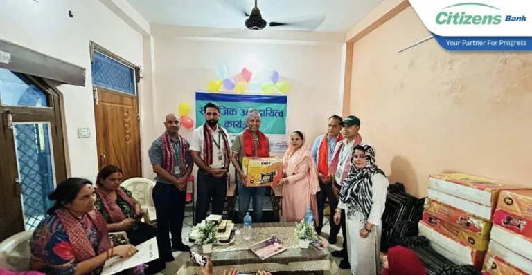 काठमाडौं, १७ बैशाख । सिटिजन्स बैंक इन्टरनेसनल लिमिटेडले फातिमा फाउन्डेसन नेपाललाई सहयोग प्रदान गरेको छ । बाँके जिल्लामा अवस्थित फातिमा फाउन्डेसन महिलाले नेतृत्व गरी चलाउँदै आएको एक सामाजिक संस्था हो । उक्त संस्थाले मुस्लिम, मधेसी र अन्य पिछडिएका वर्गका महिला तथा बालबालिकाहरूको हकहितका लागी काम गर्दै आएको छ ।