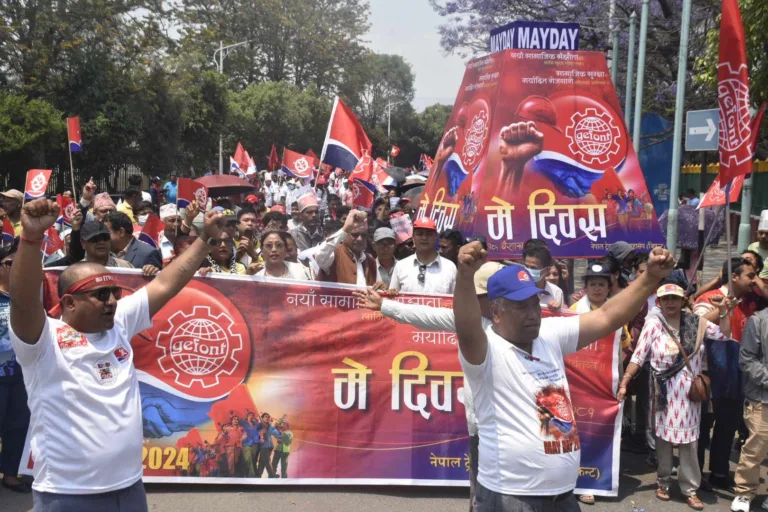 काठमाडौँ, १९ वैशाख । आज १३५औं विश्व श्रमिक दिवस । विभिन्न श्रमिक संगठनहरुले विश्व श्रमिक दिवस भव्यताका साथ मनाएका छन् । काठमाडौंमा पनि विभिन्न संगठनहरुले श्रमिक दिवस मनाएका छन् । भृकुटीमण्डपमा कार्यक्रम आयोजना गरी विभिन्न संगठनहरुले श्रमिक दिवस अर्थात ‘मे डे’ मनाएका छन् ।