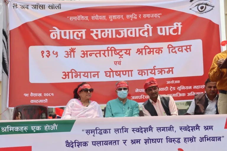 काठमाडौं, १९ बैशाख । नेपाल समाजवादी पार्टीले विभिन्न १४ अभियान सञ्चालन गर्ने भएको छ । सो पार्टीले आज सार्वजनिक गरेको घोषित अभियानमा ‘समृद्धिका लागि स्वदेशमै लगानी, स्वदेशमै श्रम अभियान’ देखि ‘म चुन्छु मेरो राष्ट्रपति’ सम्म रहेका छन् ।