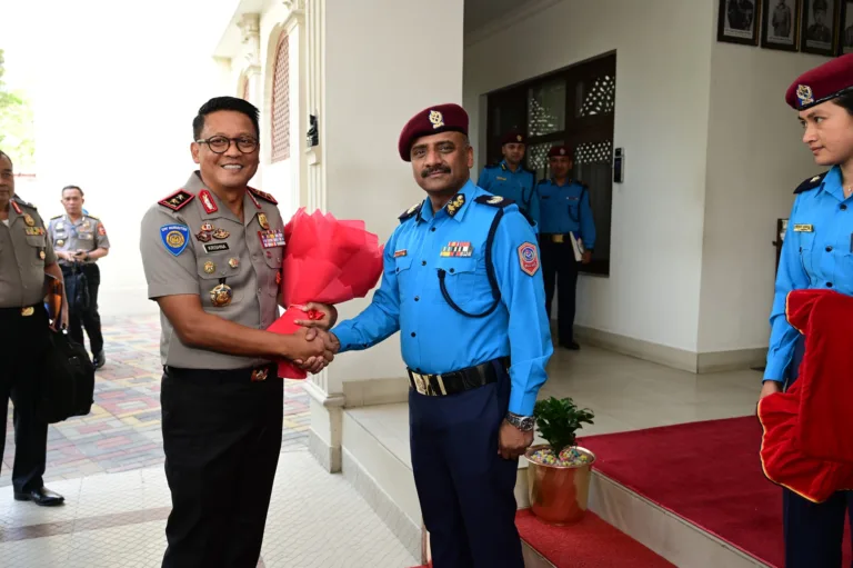 काठमाडौँ, २० वैशाख । प्रहरी महानिरीक्षक वसन्तबहादुर कुँवर र इन्डोनेसियन नेशनल प्रहरीका हेड अफ इन्टरनेशनल रिलेसन्स् डिभिजन प्रमुख आइजिपी कृष्ण मूर्तिबीच आज प्रहरी प्रधान कार्यालयमा शिष्टाचार भेटघाट भएको छ ।