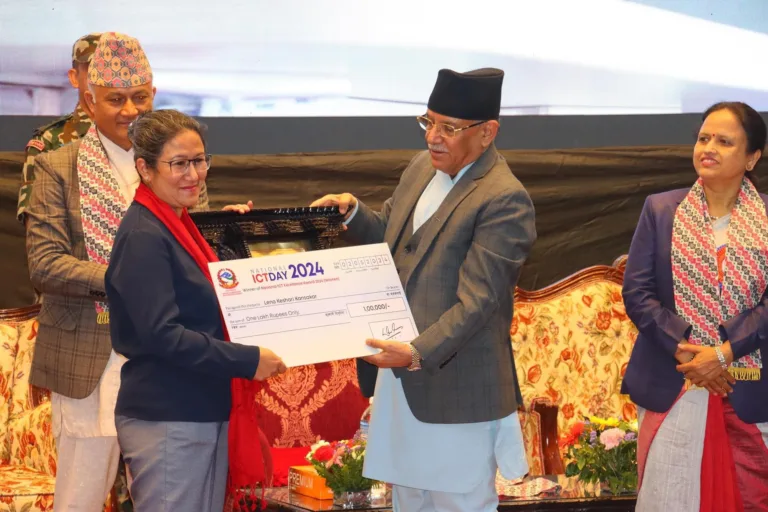 काठमाडौं, वैशाख २२ । सरकारले एनसेलकी एक्टिङ चिफ टेक्निकल अफिसर (सिटिओ) लेनाकेशरी कंसाकारलाई ‘नेसनल आइसिटी एक्सिलेन्स अवार्ड २०२४’ बाट सम्मान गरेको छ। राष्ट्रिय सूचना तथा सञ्चार प्रविधि दिवस २०८१ को अवसरमा सञ्चार तथा सूचना प्रविधि मन्त्रालयले कंसाकारलाई सो अवार्डबाट सम्मान गरेको हो।