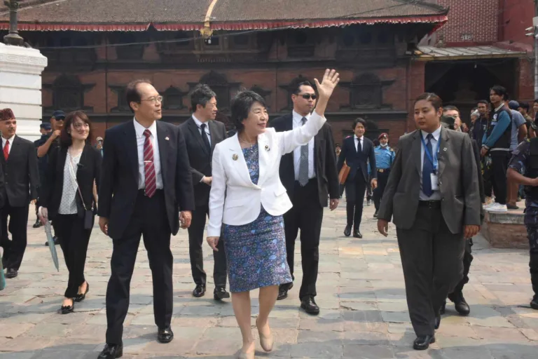 काठमाडौं, २३ बैशाख । नेपाल भ्रमणमा रहेकी जापानी विदेशमन्त्री खामीखावा योकोले नेपालको पर्यटकीय क्षेत्र काठमाडौंको वसन्तपुरको अवलोकन गरेकी छिन् । काठमाडौं ओर्लिएकै दिन उनी आज दिउँसो दुई बजे वसन्तपुर क्षेत्रमा पुगेकी हुन् ।