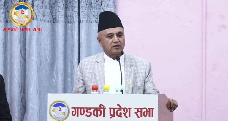 ‘गण्डकी प्रदेशमा राजनीतिक स्थायित्वसँगै समग्र विकास र समृद्धिमार्फत प्रदेशको औचित्यतामाथि उठेका प्रश्नको जवाफ दिन मेरो नेतृत्वको प्रदेश सरकारलाई विश्वासको मत प्रदान गर्न आवश्यक छ । तसर्थ, गण्डकी प्रदेश सभाका सम्पूर्ण माननीय समक्ष विश्वासको मत मागेको छु,’– उनले भने ।