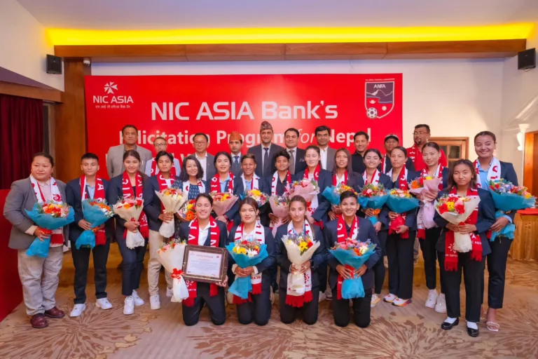 काठमाडौं, २४ वैशाख । एनआईसी एशिया बैंकले केही समयअघि साउदी अरेबियामा सम्पन्न WAFF Women’s Championship 2024 प्रतियोगितामा उत्कृष्ट प्रदर्शन गर्दै उपविजेता बन्न सफल भएको राष्ट्रिय महिला फुटबल टोलीलाई सम्मान गरेको छ ।