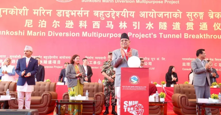 काठमाडौँ, २६ वैशाख । तराई–मधेसमा १२ महिना नै सिँचाइ सुविधा पु¥याउने लक्ष्यका साथ सुरूगरिएको सुनकोशी मरिण डाइभर्सन आयोजनाको सुरुङ निर्माण सम्पन्न भएको छ । आज प्रधानमन्त्री पुष्पकमल दाहाल ‘प्रचण्ड’ ले स्वीच थिच्नु भएपछि सुरुङ छिचोलिएको हो ।