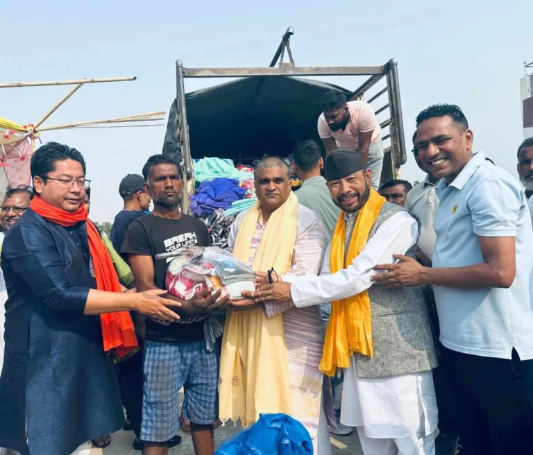 मटिहानीका १३४ आगलागी पीडित घरपरिवारलाई समाजसेवी तथा माओवादी नेता बस्नेतको पहलमा राहत वितरण