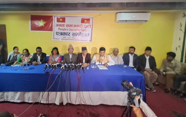 काठमाडौं, २७ बैशाख । जनता समाजवादी पार्टीका अध्यक्ष अशोक राईले आफूहरुले कानून र संविधानसम्मत् रुपमा पार्टी दर्ता गराएको भन्दै कसैले कानूनी चूनौति दिए सामाना गर्ने स्पष्ट पारेका छन् । जनता समाजवादी पार्टी, नेपालबाट विभाजित भएर नयाँ दल दर्ता गराएपछि आज (बिहीबार) पहिलोपटक पत्रकार सम्मेलन गर्दै राईले यस्तो बताएका हुन् ।