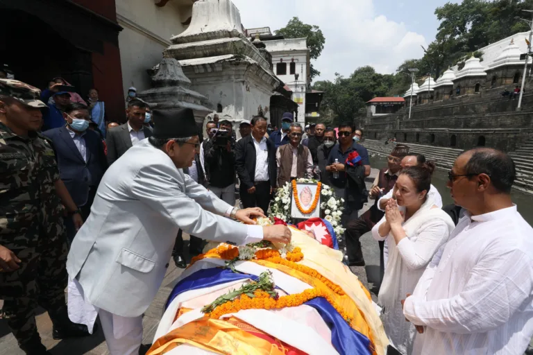 उनको आज दिउँसो पशुपति आर्यघाटमा अन्त्येष्टि गरिएको छ । उनको शवलाई पशुपति आर्यघाटमा पुगेर सभामुख देवराज घिमिरेले श्रद्धाञ्जलि अर्पण गरेका थिए । श्रद्धाञ्जली अर्पण गर्दै घिमिरे दिवंगत आत्माको चीर शान्तिको कामनाको साथै शोक सन्तप्त परिवारजनप्रति गहिरो समवेदना प्रकट गरेका छन् ।