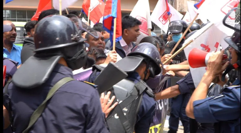 काठमाडौं, ३१ वैशाख । भन्सार विभाग घेराउमा उत्रिएका प्रभु साह नेतृत्वको आम जनता पार्टीका नेता तथा कार्यकर्ताहरु र प्रहरीबीच झडप भएको छ । त्रिपुरेश्वरस्थित् भन्सार विभागको घेराउमा उत्रिएका आजपाका कार्यकर्ताहरुलाई प्रहरीले धरपकड गरेको हो । सो क्रममा आजपाका एक दर्जन कार्यकर्ताहरु पक्राउ परेका छन् ।