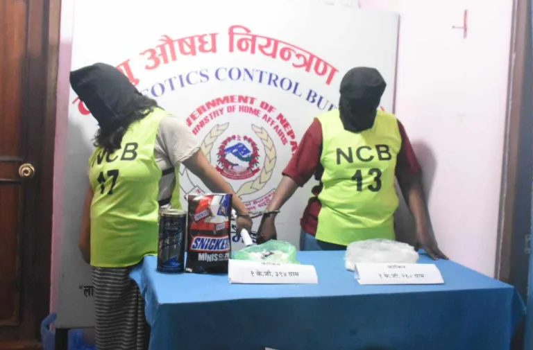 काठमाडौं, ३ जेठ । नेपाल प्रहरीको लागु औषध नियन्त्रण ब्यूरोले अवैद्य लागु औषध कोनिसहति अन्तर्राष्ट्रिय कारोबारी महिलाहरु पक्राउ गरेको छ । प्रहरीले २ केजी ६५४ ग्रामसहित तीन जना महिलाहरु पक्राउ गरेको हो । उनीहरलाई आज पत्रकार सम्मेलन गरेर सार्वजनिक गरिएको थियो । विभिन्न मुलुकहरुबाट नेपाल प्रवेश गरी शंकास्पद गतिविधि गर्ने विदेशीहरुको ब्यूरोले निरन्तर निगरानी गरेको थियो ।