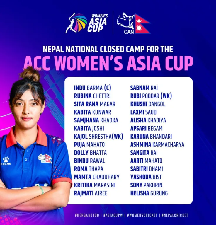 महिला एसिया कपका लागि इन्दूको कप्तानीमा २८ सदस्यीय टोली बन्द प्रशिक्षणमा