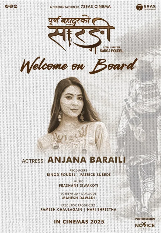 काठमाडौं । फिल्म ‘पूर्ण बहादुरको सारङ्गी’मा नायिका अञ्जना बराइली अनुबन्धित भएकी छन् । सेभेन सिज सिनेमाको प्रस्तुतिमा बन्न लागेको यो फिल्ममा कलाकारहरूको लाइनअप पूर्णहुने क्रममा रहेको छ ।