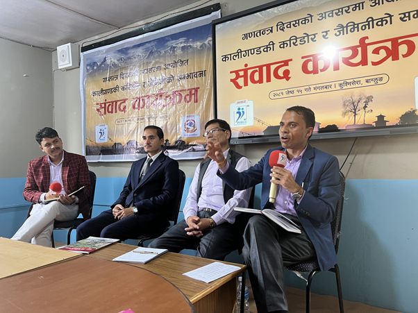 जैमिनी ऋषिको नामबाट नगरपालिकाको नामाकरण गरिएकाले धार्मिक पर्यटन प्रवर्द्धन गर्ने उद्देश्यले गौरवको आयोजनाका रुपमा रहेको कोरिडोरमा सम्भावनाको खोजी थालिएको हो । छिमेकी भारत र चीनलाई जोड्ने कोरिडोरको मध्य भागमा पर्ने जैमिनीले कृषि, उद्योग, पर्यटन र व्यापारको सम्भावना खोज्न थालेको नगरप्रमुख नरबहादुर पुनले बताए । सोही सन्दर्भमा सरोकार भएकाहरुसँग ‘कालीगण्डकी कोरिडोर र जैमिनीको सम्भावना’ विषयमा मङ्गलबार अन्तरक्रिया गरेको थियो ।