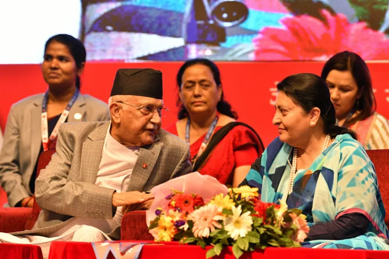 काठमाडौँ, १६ जेठ । नेकपा एमालेको दुईदिने ‘राष्ट्रिय महिला भेला’ सुरु भएको छ । भेलाको पूर्वराष्ट्रपति विद्यादेवी भण्डारीले उद्घाटन गरिन् । कार्यक्रममा एमालेका अध्यक्ष केपी शर्मा ओलीलगायत नेताहरु उपस्थित छन् ।