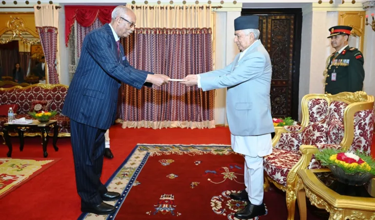 काठमाडौँ, १७ जेठ । राष्ट्रपति रामचन्द्र पौडेलसमक्ष नेपालका लागि विभिन्न चार मुलुकका नवनियुक्त गैरआवासीय राजदूतले आ-आफ्नो ओहोदाको प्रमाणपत्र पेस गरेका छन् ।