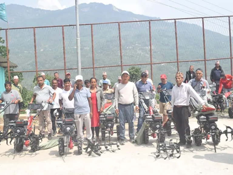 “रु ४० हजार मूल्यका हाते ट्र्याक्टरमा कृषक र गाउँपालिकाले रु २०/२० हजारको दरले साझेदारी भएको छ, छिट्टै व्यावसायिक रूपमा तरकारी खेती गर्ने कृषकलाई प्लाष्टिक टनेलसमेत अनुदानमा वितरण गर्ने योजना बनाएका छौँ”, वडाध्यक्ष शाहीले भने । शुक्रबार वडा कार्यालयमा आयोजित कार्यक्रममा वडाध्यक्ष शाही, वडा सदस्य जितबहादुर खत्री, आइती दर्जीलगायतले कृषकलाई हाते ट्र्याक्टर वितरण गरे ।