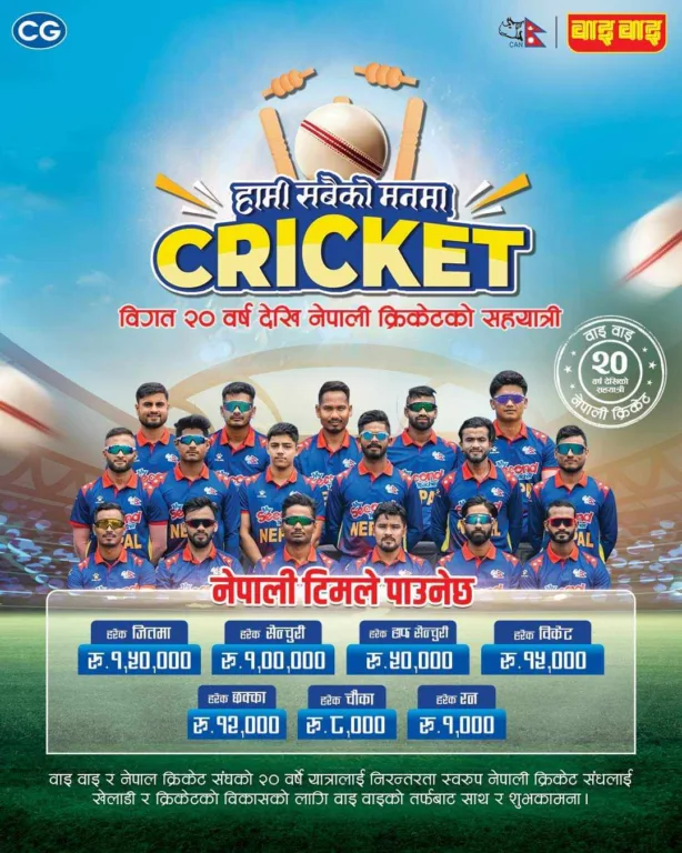 प्रत्येक विकेटमा १५ हजार, हरेक छक्कामा १२ हजार, हरेक चौका ८ हजार र हरेक रनमा एक हजार रुपैयाँ वाइवाइले प्रदान गर्ने उल्लेख गरेको छ । नेपालले पहिलो खेल मंगलबार नेदरल्यान्डससंग मंगलबार खेल्नेछ ।