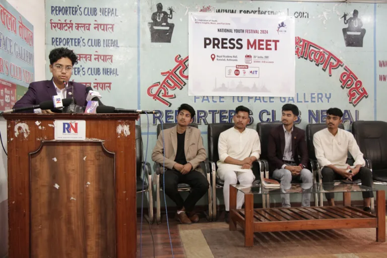 काठमाडौं, २१ जेठ । वाईईडी टक्स, युथ फर चेन्ज, मोडल इन्स्टिच्युट अफ टेक्नोलोजी र ईन डेप्थ स्टोरीले संयुक्त रुपमा नेशनल युथ फेस्टिभल–२०२४ को आयोजना गर्ने भएका छन् । आज (सोमबार) रिपोर्टर्स क्लब नेपालमा पत्रकार सम्मेलनमार्फत कार्यक्रमबारे जानकारी गराइएको हो ।