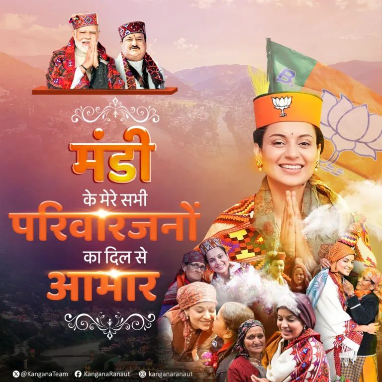 आफ्नो जितपछि कंगनाले सामाजिक सञ्जालमा समस्त मंडीवासीप्रति आभार प्रकट गरेकी छिन् । उनले भनेकी छिन्–‘यो जित तपाईहरु सबैको हो, यो जित प्रधानमन्त्री मोदीजी र भाजपाप्रति विश्वासको जित हो । र, यो जित सनातनको पनि हो । यो जीत मंडीको सम्मानको पनि हो ।’