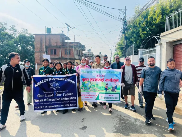 काठमाडौं, जेठ २४ । विश्व वातावरण दिवसको अवसरमा राजधानीको तारकेश्वर नगरपालिकामा वृहत् सरसफाइ कार्यक्रम सम्पन्न गरिएको हो । परिवर्तन अभियान नेपालको आयोजनामा बुधबार बिहान सरसफाइ कार्यक्रम सम्पन्न गरिएको हो ।