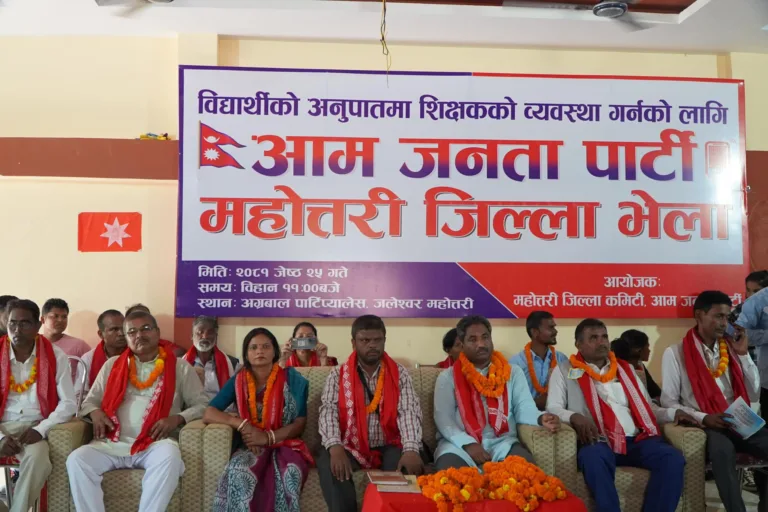 काठमाडौं, २५ जेठ । प्रभु साह नेतृत्वको आम जनता पार्टीले महोत्तरी जिल्ला कमिटी घोषणा गरेको छ । अध्यक्ष साहको उपस्थितिमा आज जलेश्वरको अग्रवाल पार्टी प्यालेसमा आयोजित जिल्ला भेलामार्फत अरविन्द साहको नेतृत्वमा ७५ सदस्यीय कमिटी घोषणा गरिएको हो ।