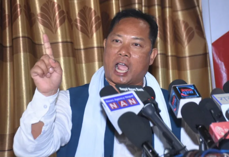 नाउपाको महाधिवेशनलाई निर्वाचन आयोगले अवैध भनेको विषयलाई लिएर उनले आक्रोश पोखे । यस्तो प्रकारको शासन पद्धतिबाट आजित भएको उनले बताए । यो व्यवस्थाले दुई सयभन्दा बढी राष्ट्रिय गीत लेखिरहेको व्यक्तिलाई देशद्रोही बनाएको भन्दै उनले दुःख व्यक्त गरे । Photo By: Mukunda Kalikote/Reporters Nepal