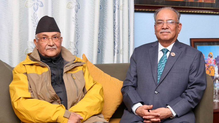काठमाडौं, ३० जेठ । प्रधानमन्त्री पुष्पकमल दाहाल ‘प्रचण्ड’ र नेकपा (एमाले) का अध्यक्ष केपी शर्मा ओलीबीच सिंहदरबारमा भेटवार्ता जारी रहेको छ । उनीहरुबीच करिब डेढ घण्टादेखि भेटवार्ता जारी रहेको छ ।