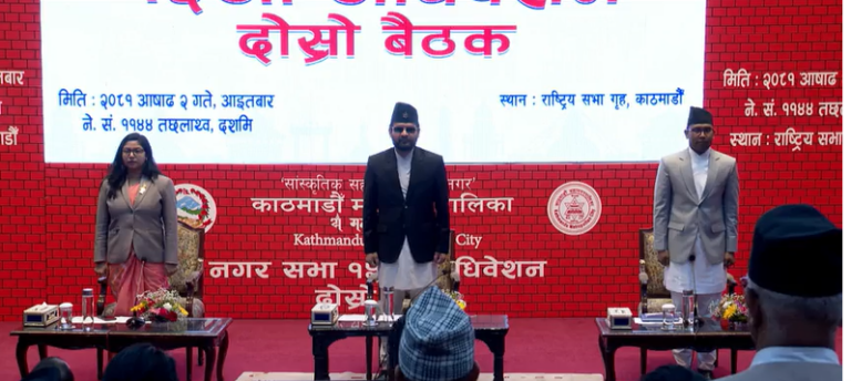 काठमाडौं,२ असार । नेकपा एमाले र नेपाली कांग्रेसबाट निर्वाचित वडा अध्यक्षले बैठक बहिष्कार गरेपछि काठमाडौं महानगरको नगर सभाको बैठक स्थगित भएको छ ।