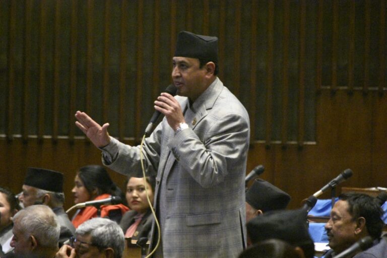 ‘प्रधानमन्त्री र मन्त्रीहरू जहिले पनि सत्ता जोगाउने काम गरिरहेका छन् । नजिकका नाता र दातालाई रिझाउने काम भएको छ । संसद्का कर्मचारीहरू कालोपट्टी बाँधेर काम गरिरहेका छन्,’ खतिवडाले भने, ‘मन्त्रीज्यूहरू, तपाईंहरूको ससुरालीबाट दाइजो ल्याएको पद होइन, यही संसद्बाट निर्वाचित भएको हो, संसद्लाई छल्ने काम नगर्नुस् ।’