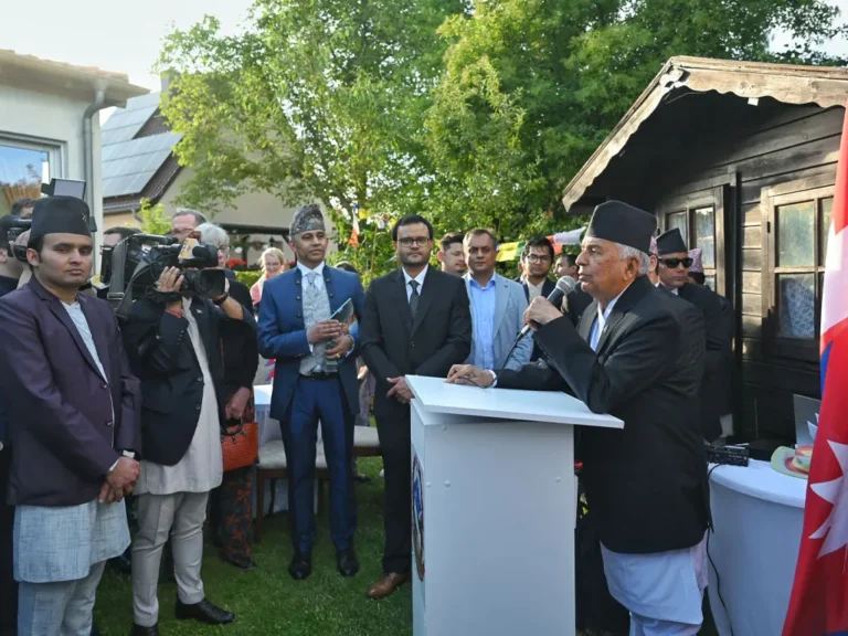 काठमाडौं, असार ३ । जर्मनीको भ्रमणमा रहेका राष्ट्रपति रामचन्द्र पौडेलको सम्मानमा जर्मनीको वर्लिनस्थित नेपाली राजदूतावासले आाइतबार स्वागत समारोह आयोजना गरेको छ ।